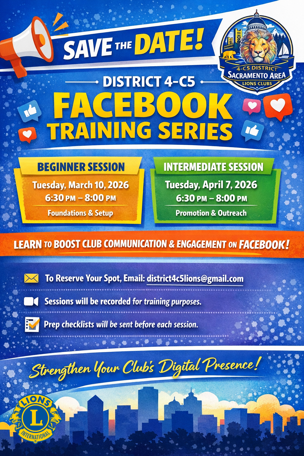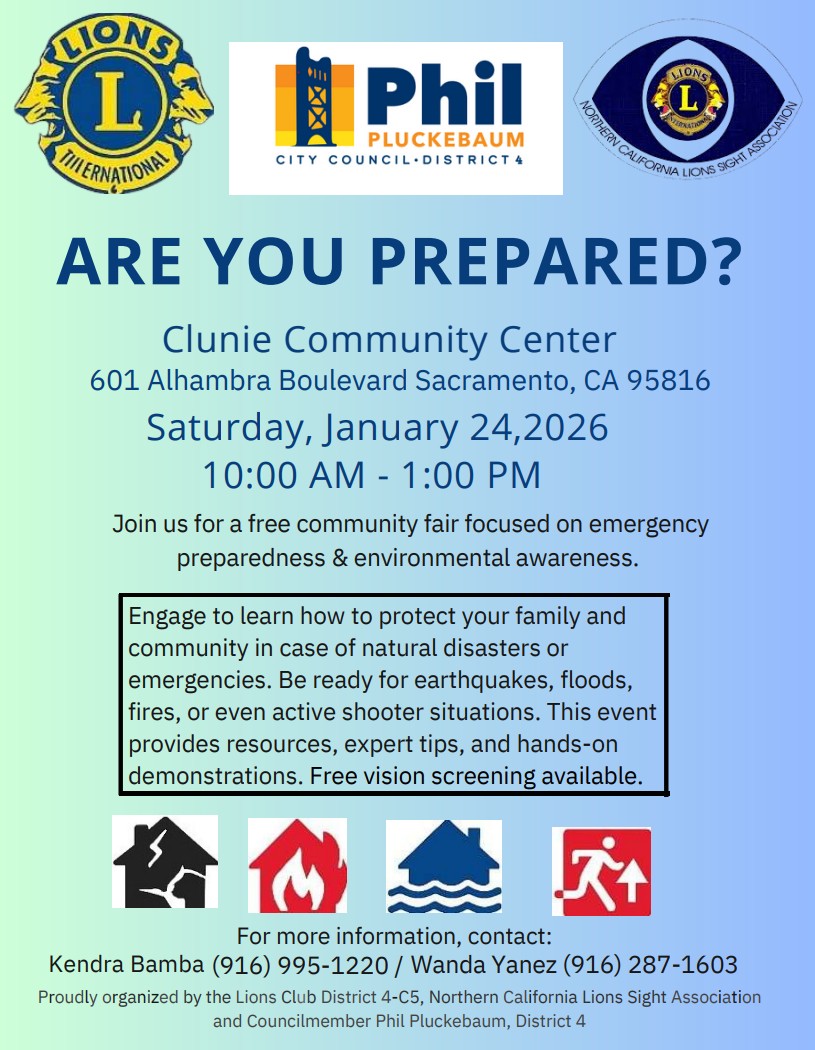 • Description: Lions Clubs International District 4-C5, in partnership with local organizations, invites the Sacramento community to a free fair focused on emergency preparedness, public safety, environmental awareness, and resilience. Highlights include interactive booths, educational sessions on disaster readiness, public safety demonstrations (including an active shooter presentation), and more to empower residents with practical knowledge and resources.