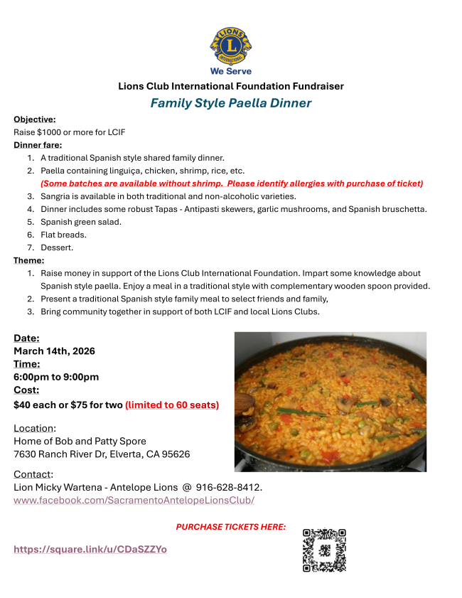 Enjoy a great dinner and support our Lions Wilderness Camp. 28% of the proceeds will be donated to our camp. This is nationwide, so even though we may be on the way to our vacation, we have already picked out the closest Panda Express for us to order dinner.